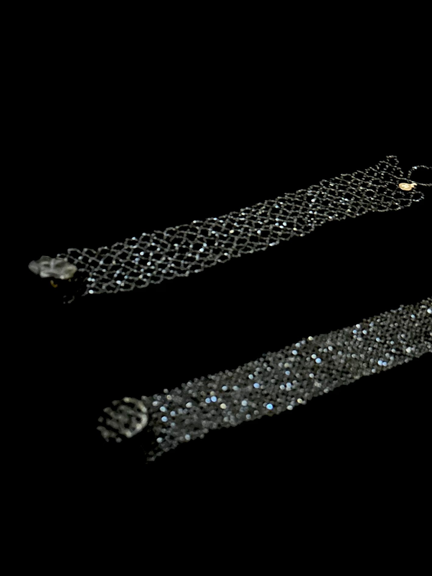 深い黒でありながら、星空を思わせるような個々の輝きが美しいビーズです。